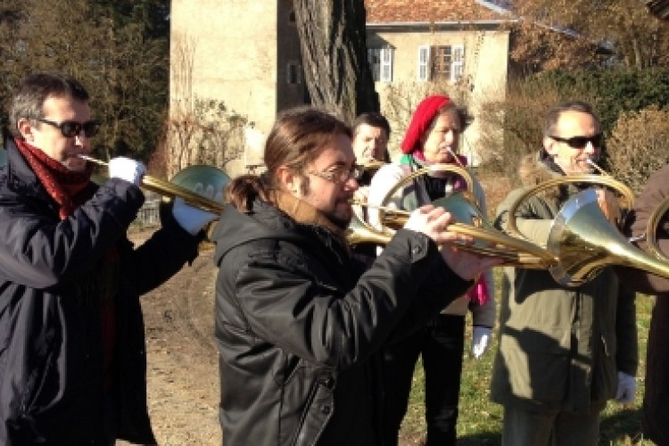 Tous les deux mois, nos amis sonneurs de la Veneria Reale de Turin se déplacent à Bonne pour travailler la technique de Trompe. Ces cornistes expérime...